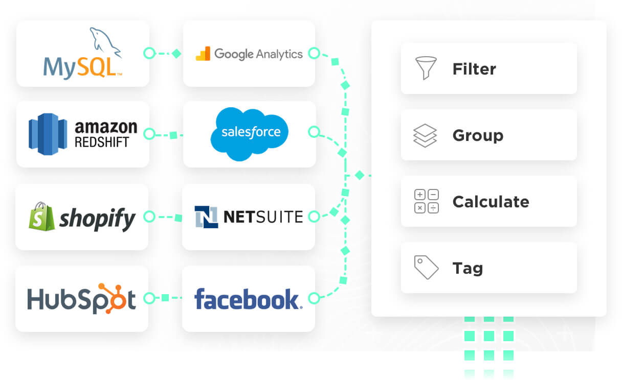 With inline ETL transforms and point and click tools you no longer need complex SQL queries to clean and prep your data.